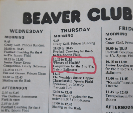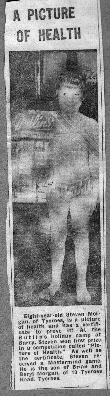 This is photo I am very proud of. I won the Barry Island Butlin’s ‘Picture Of Health’ competition in July 1977. Since I won this award things have gone downhill. A week after the event I caught the German measles!!