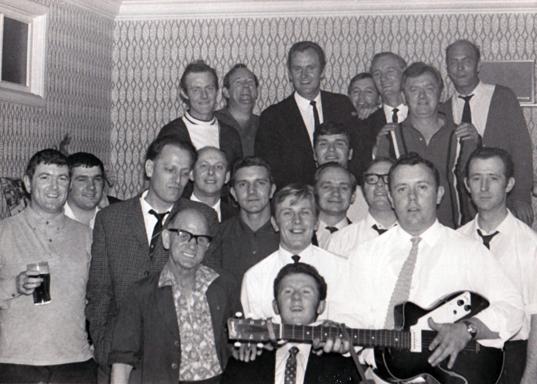 This is a photo from 1969 in Betws Rugby Club. The party was for my uncle (Emlyn Jones) as his family were emigrating to Australia. The Jones family missed Wales and returned back home in 1972. My father (Brian Morgan) is in this photo. If you recognise anyone else please let me know.
